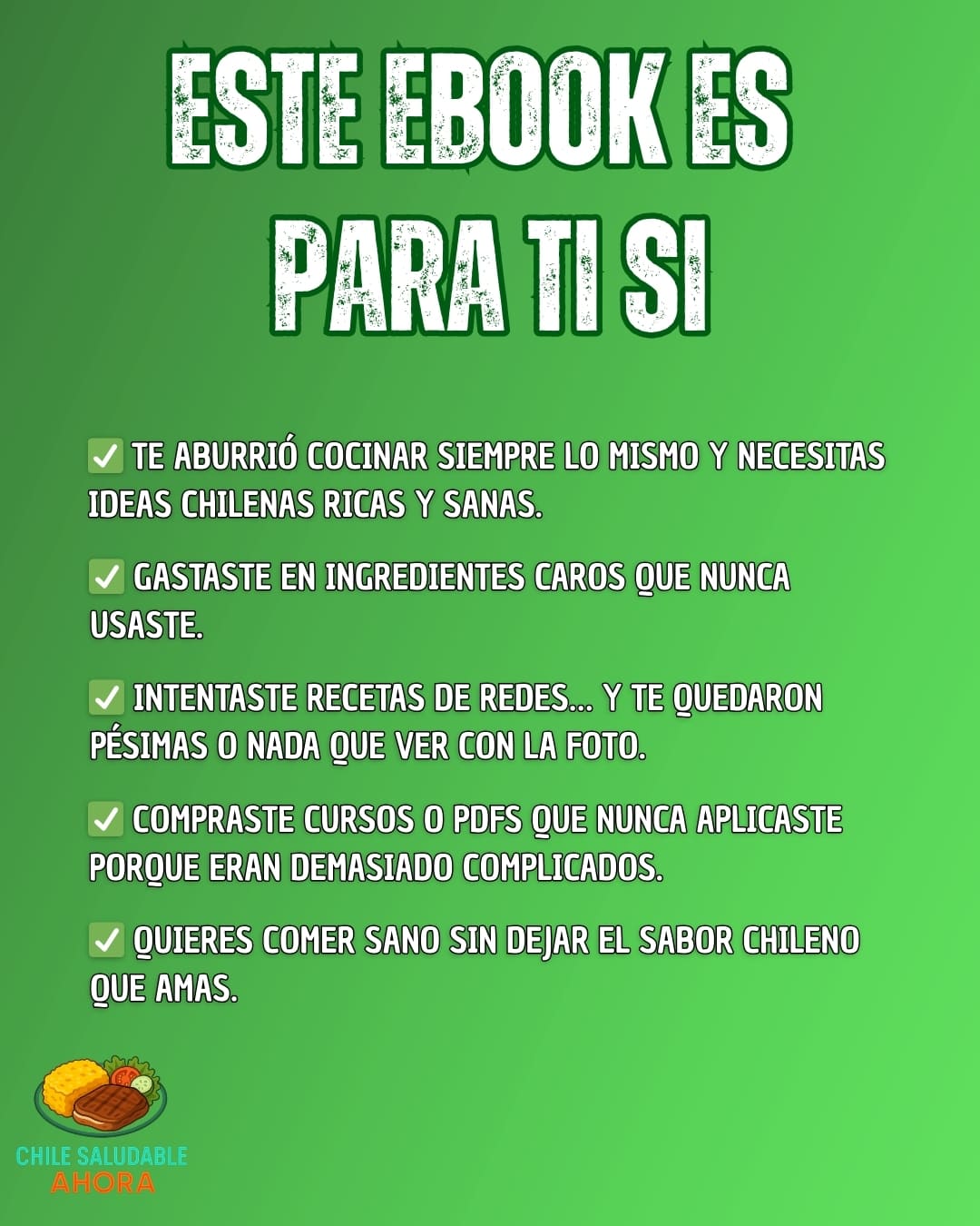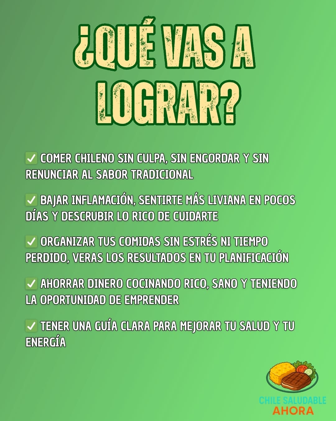 • Recetas probadas, fotografías, porciones y tips para que puedas comer rico sin dejar la comida chilena que amas.